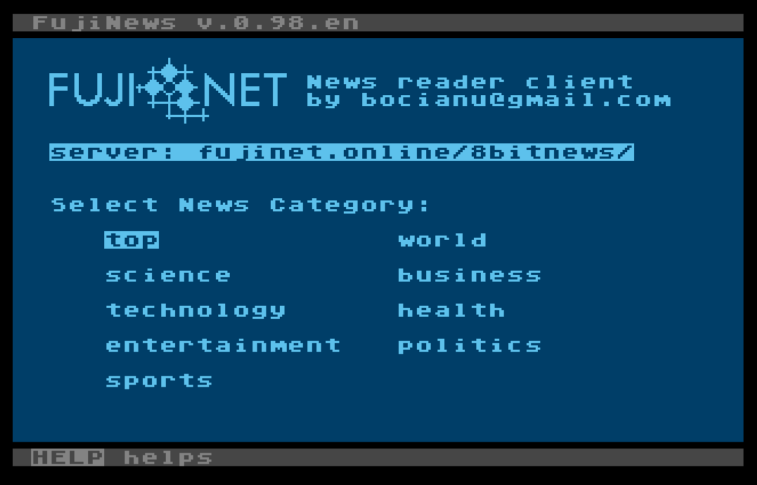 Program umożliwiający przeglądanie wiadomości agregowanych z serwisów informacyjnych przy pomocy FujiNetu.